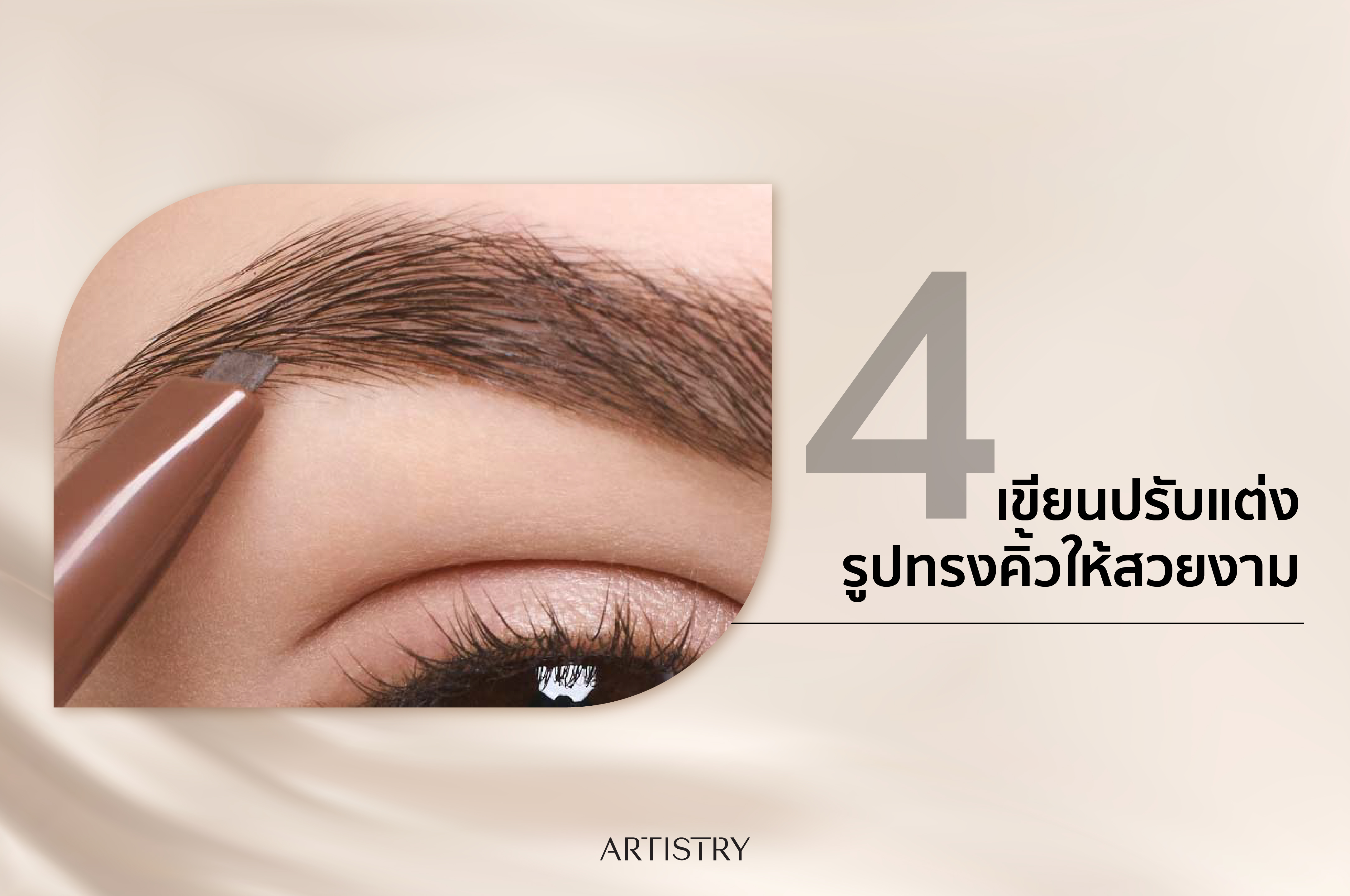 หลังลงแป้งจนทั่วใบหน้า ต่อไปเป็นการใช้ดินสอเขียนคิ้ว เพื่อเขียนปรับแต่งรูปทรงคิ้วให้มีความสวยงาม ควรเลือกใช้โทนสีของที่เขียนคิ้วให้เข้ากับสีผม โดยมีให้เลือกทั้งดินสอเขียนคิ้วแบบหัวอัตโนมัติ แบบฝุ่น แบบเมจิก หรือแบบเจล ซึ่งวิธีการเขียนคิ้ว ควรเริ่มโครงจากส่วนหางคิ้ว และเว้นบริเวณหัวคิ้วเอาไว้ จากนั้นลงสีด้านในโครงสร้างคิ้วที่วาดไว้ ให้สีของหัวคิ้วอ่อนกว่า อาจใช้แปรงหรือคัตตอนบัด เกลี่ยบริเวณหัวคิ้วให้ดูฟุ้งๆ เป็นธรรมชาติ